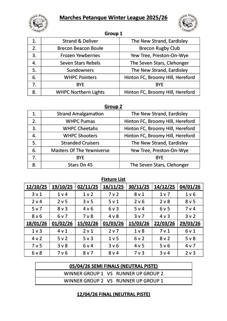 WHPC are proud to have entered an unprecedented 5 teams into this year's Marches Petanque League.